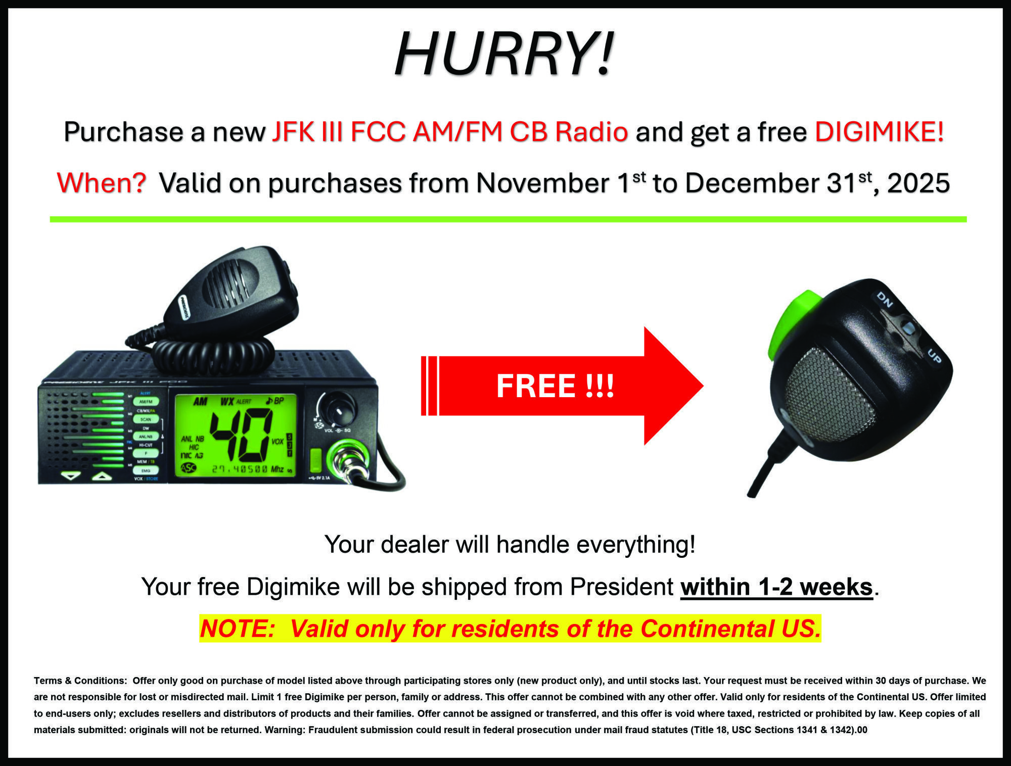 Presidents first OEM Truck Size AM/FM CB radio is sure to please all CB