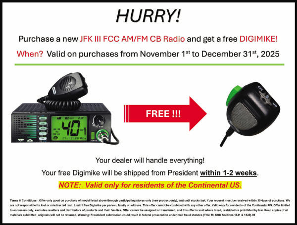The JFK III FCC AM/FM CB radio has all the bells and whistles for