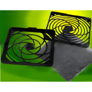 120mm fan filter. 4 chrome screws fix the 4 sides Removable front plate, back plate and middle filter, easy to wash.