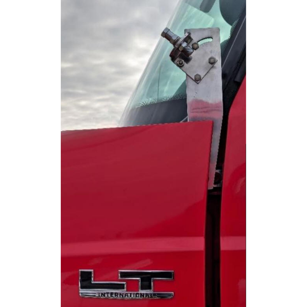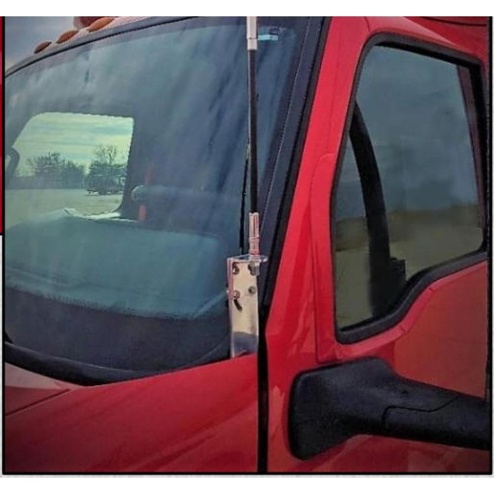 The PC-A70-02 is designed to mount on 2017 – 2022 International LT Semi-tractors and requires no drilling. The bracket is constructed of 5mm thick polished aircraft aluminum with Stainless steel hardware and a heavy duty chrome plated-brass 3/8-24 thread stud with SO239. Utilizes top door hinge threaded bolts, mounts on driver or passanger side.