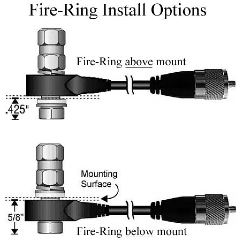 The design of the FireRing coax termination requires the 1.25″ mounting bolt that is found in the K-4R stud mount.