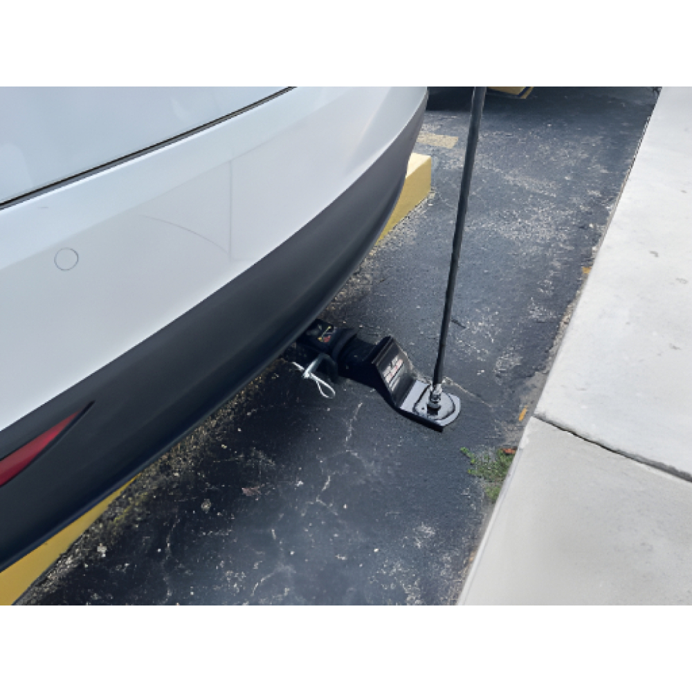 Special mount to fit trailer hitch receivers. These are hand made here locally and are of the finest quality materials and workmanship. We start with a new trailer hitch and a new Firestick Stainless Steel Bracket. The top of the bracket is cut off and it is welded to the top of the trailer mount. Now the hole is a perfect 1/2 inch for standard stud mounts AND the bottom is a stainless surface where the stud mount ground hits. Paint where the hitch goes in the receiver is ground off for good ground connection. The rest is painted black.