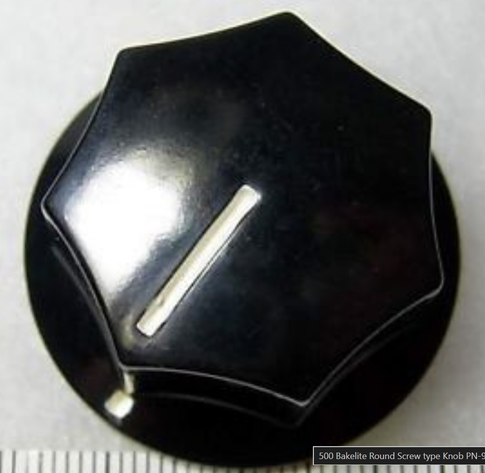 Individual historic Bakelite-style knob, round contour and secure set screw attachment.