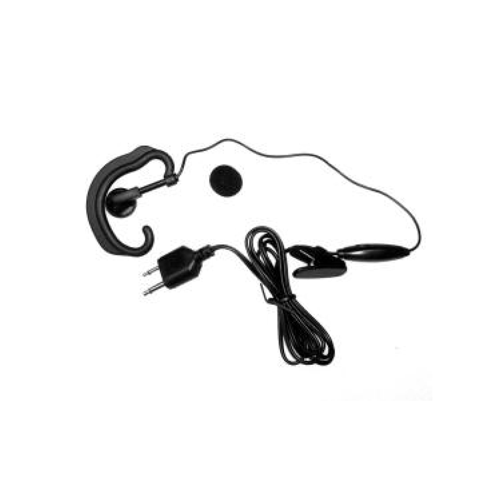 This handy unit wraps around your ear and has a soft cushion ear bud. Inline with the cord there is a PTT button and Microphone as well as a lapel clip.