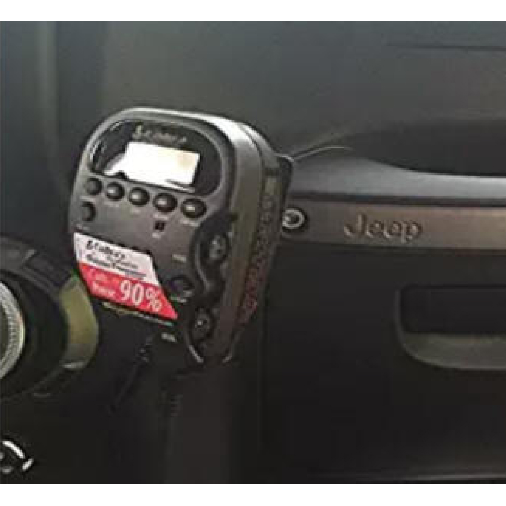 Mopar Official Licenced product. Grab Bbar CB radio mount that fits the Wrangler JK 2011+ Easy Installation in existing screw for Dash handrail.