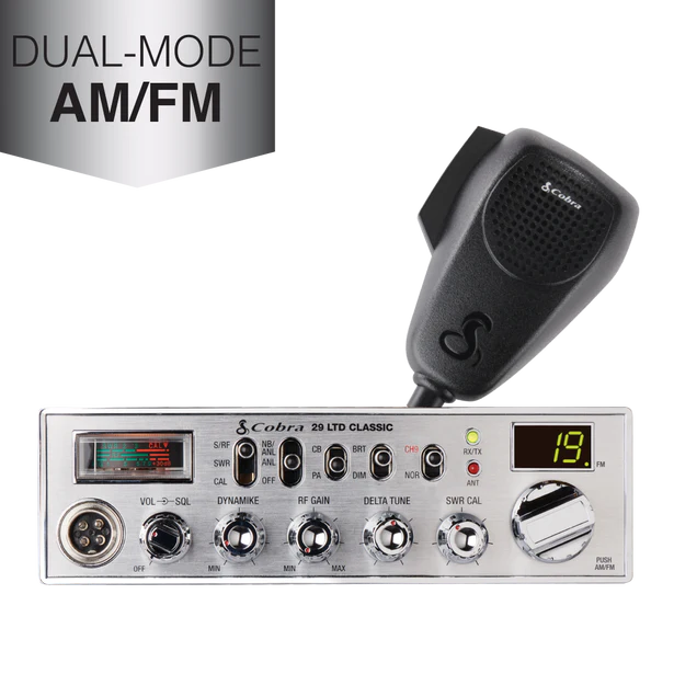 The 29 LTD Classic has been the standard of excellence in professional CB radios for over 50 years. Now you can get the classic CB with new dual-mode AM/FM so you’ll have clearer sound with less background noise. Cobra 29 LTD CB radios are known for their performance, reliability, and durability and will provide you with years of reliable service. Now, thanks to Cobra’s leadership to enable FM mode usage with CBs used in the United States, you can enjoy dual-mode AM/FM functionality in your CB.