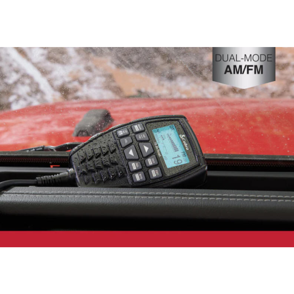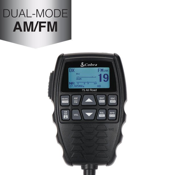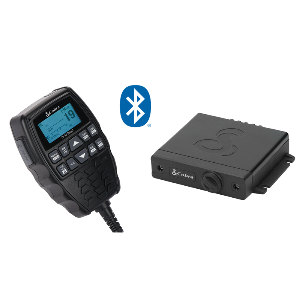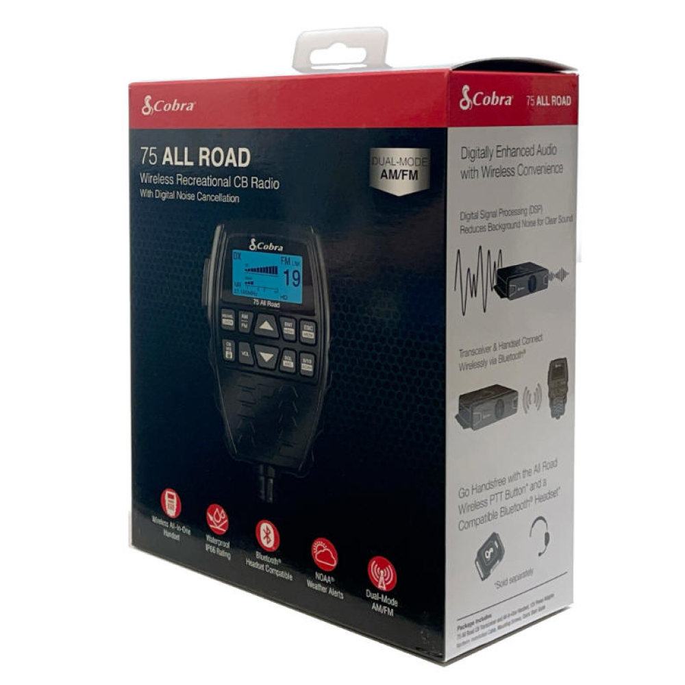 The Cobra 75 All Road wireless CB radio propels CB communication into the 21st century. Enjoy Bluetooth® connectivity, Dual-Mode AM/FM, digital noise cancellation, and waterproof IP66 rating. Mount the transceiver anywhere and pair wirelessly with a stowable, USB-powered handset. The All Road is the only CB you’ll ever need for road trips, rock hopping, or overlanding.